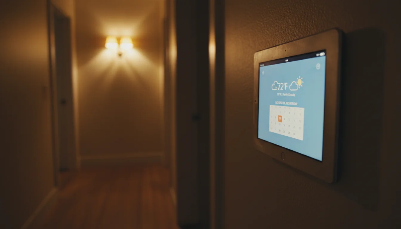 Kiosker (free, $24.99/year, iOS 15.6+) or Kiosker Pro ($39.99 one-time) adds motion detection – the screen wakes when someone walks past, which is useful for a hallway or kitchen panel. Requires a newer iPad (Air 2 or later running iOS 15.6+).